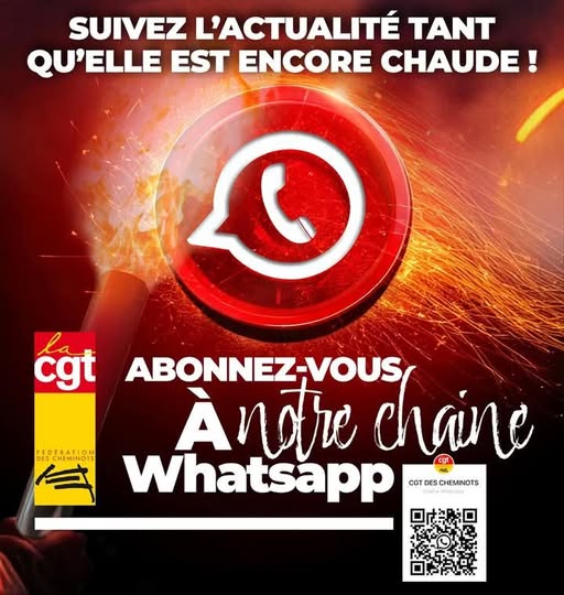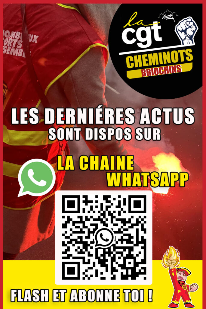Toujours à la pointe de l’information, la CGT Cheminots Saint-Brieuc lance sa chaîne WhatsApp officielle afin d’informer les camarades et les cheminots sur les sujets locaux mais également nationaux à travers la diffusion d’articles, de tracts, de vidéos. La chaîne est ouverte à toutes et tous alors rejoignez-nous !
