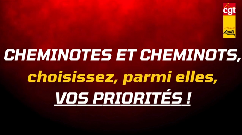 La CGT cheminots porte un projet de Nouveau Statut du Travail Cheminot pour toutes et tous. A vous de donner vos priorités parmi 12 revendications majeures, classées en 6 thématiques.