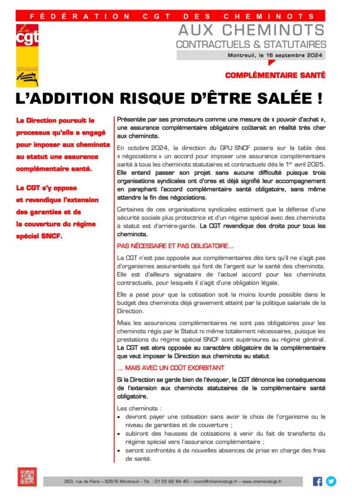 En octobre 2024, la direction du GPU SNCF posera sur la table des « négociations » un accord pour imposer une assurance complémentaire santé à tous les cheminots statutaires et contractuels dès le 1er avril 2025.
