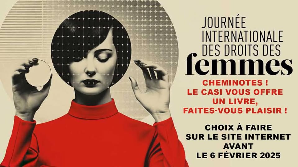 Cheminotes, pour la Journée internationale des droits des femmes, le CASI vous offre un livre ! Faites vous plaisir et faites passer le message car le choix est à faire sur le site internet du CASI avant le 6 Février 2025.