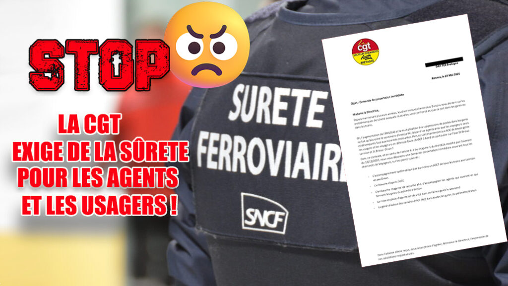 Le manque de sûreté à bord des trains bretons et dans les gares n’a que trop duré ! La CGT Cheminots Bretagne a décidé de ne pas laisser la situation se dégrader sans réagir et une DCI (Demande de concertation immédiate) a été déposée le 27 mai dernier.